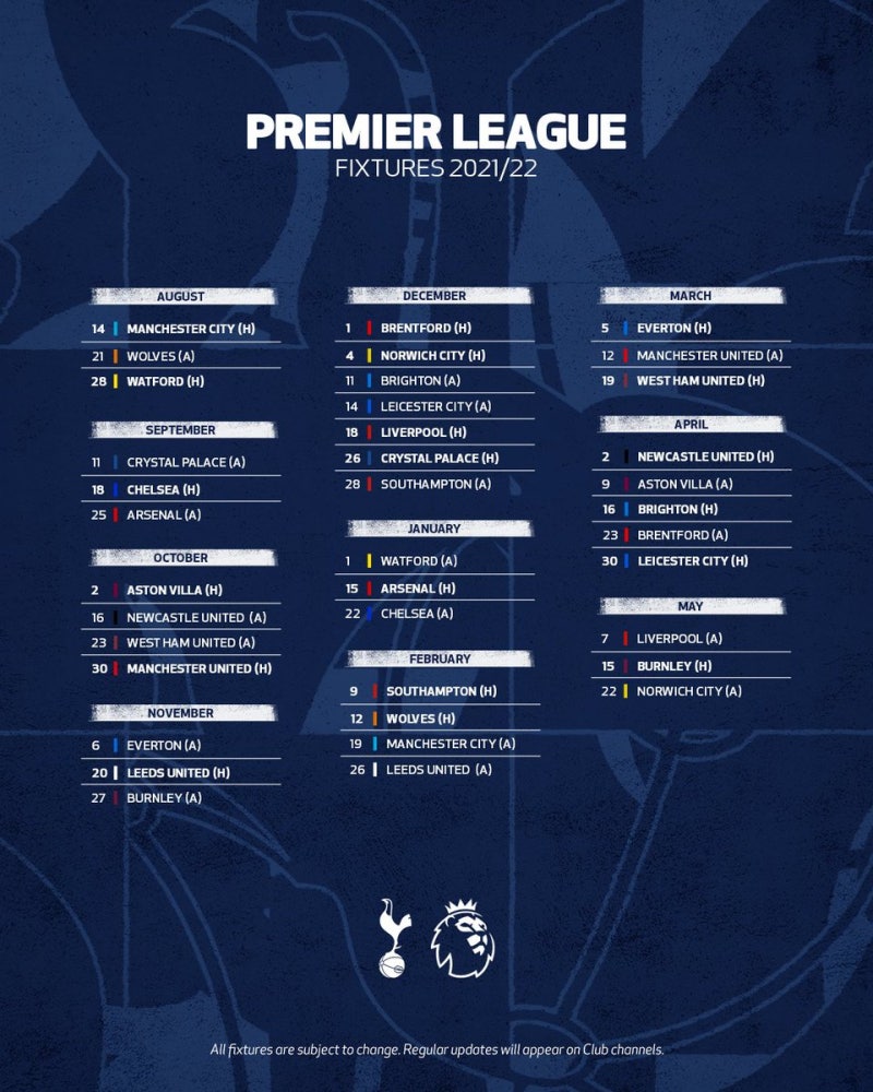 토트넘 경기일정. 9월 11일 토요일 2030 크리스탈 팰리스 원정 5r. EPL 프리미어리그 20212022 시즌 토트넘 경기일정. 2022-05-15 2300 토트넘 홋스퍼 FC.