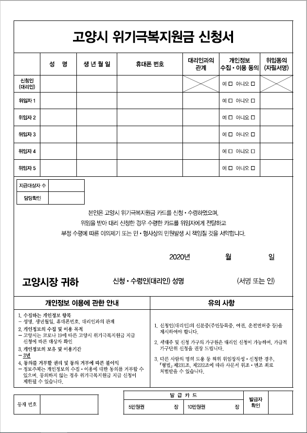 고양시민원콜센터 Ar Twitter 고양시 위기극복지원금 신청서 Https T Co Agnozmgsmi